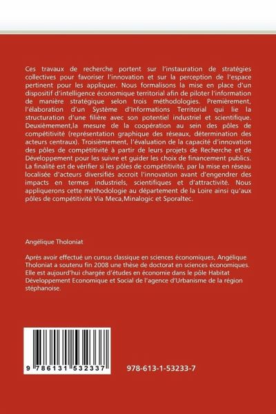 Ces travaux de recherche portent sur l'instauration de stratégies collectives pour favoriser l'innovation et sur la perception de l'espace pertinent pour les appliquer. Nous formalisons la mise en place d'un dispositif d'intelligence économique territorial afin de piloter l'information de manière stratégique selon trois méthodologies. Premièrement, l'élaboration d'un Système d'Informations Territorial qui lie la structuration d'une filière avec son potentiel industriel et scientifique. Deuxièmement,la mesure de la coopération au sein des pôles de compétitivité (représentation graphique des réseaux, détermination des acteurs centraux). Troisièmement, l'évaluation de la capacité d'innovation des pôles de compétitivité à partir de leurs projets de Recherche et de Développement pour les suivre et guider les choix de financement publics. La finalité est de vérifier si les pôles de compétitivité, par la mise en réseau localisée d'acteurs diversifiés accroit l'innovation avant d'engendrer des impacts en termes industriels, scientifiques et d'attractivité. Nous appliquerons cette méthodologie au département de la Loire ainsi qu'aux pôles de compétitivité Via Meca,Minalogic et Sporaltec.