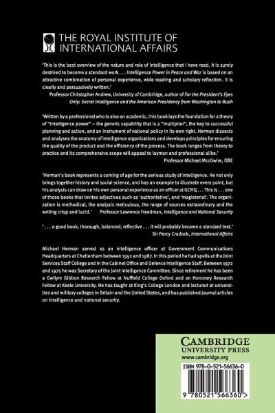 Michael Herman, a British former senior intelligence officer, describes the various components of intelligence; discusses what intelligence is for; considers issues of accuracy, evaluation and efficiency; and makes recommendations for the future of intelligence in the post-Cold War world.