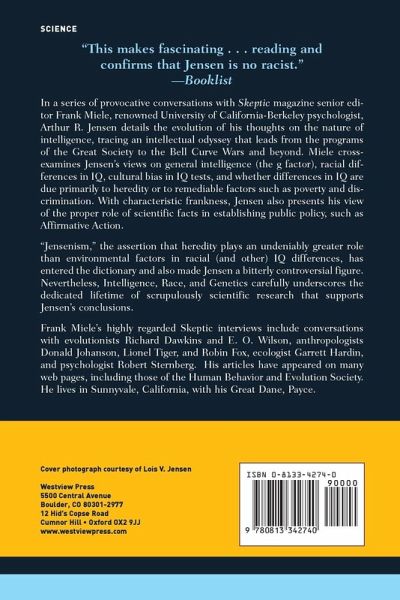 In a series of provocative conversations with Skeptic magazine Ssenior editor Frank Miele, renowned University of California-Berkeley psychologist Arthur R. Jensen details the evolution of his thoughts on the nature of intelligence, tracing an intellectual odyssey that leads from the programs of the Great Society to the Bell Curve Wars and beyond. Miele cross-examines Jensen's views on general intelligence (the g factor), racial differences in IQ, cultural bias in IQ tests, and whether differences in IQ are due primarily to heredity or to remediable factors such as poverty and discrimination. With characteristic frankness, Jensen also presents his view of the proper role of scientific facts in establishing public policy, such as Affirmative Action. 'Jensenism' the assertion that heredity plays an undeniably greater role than environmental factors in racial (and other) IQ differences, has entered the dictionary and also made Jensen a bitterly controversial figure. Nevertheless, Intelligence, Race, and Genetics carefully underscores the dedicated lifetime of scrupulously scientific research that supports Jensen's conclusions.