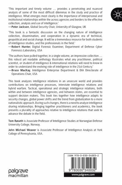 This book analyzes intelligence relations in an unsecure world and provides contributions on intelligence processes, interstate intelligence relations and hybrid warfare. Tactical, operational and strategic intelligence relations, both within and between intelligence agencies, and between states, are essential to support decision makers. This book ties together how intelligence adapts to security changes, global power shifts and the trend from globalization to a more nationalistic approach. During such changes, there is a need to analyze intelligence sharing relationships. Bringing together practitioners and academics, the book presents a plurality of approaches relative to intelligence relations that seek to advance the debate in the field.