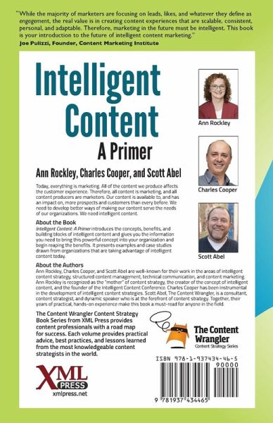 Today, everything is marketing. All of the content we produce affects the customer experience. Therefore, all content is marketing and all content producers are marketers. Intelligent Content: A Primer introduces intelligent content: how it works, the benefits, the objectives, the challenges, and how to get started. Anyone who wants to understand intelligent content will get a clear introduction along with case studies and all the reference information you could ask for to make the case for intelligent content with your management. Intelligent Content: A Primer is written by three leaders in content strategy and content marketing. Ann Rockley is widely recognized as the mother of content strategy. Charles Cooper, co-author with Ann Rockley of Managing Enterprise Content, has been been involved in creating and testing digital content for more than 20 years. And Scott Abel, known as The Content Wrangler, is an internationally recognized global content strategist. Together, they have created the definitive introduction to intelligent content.