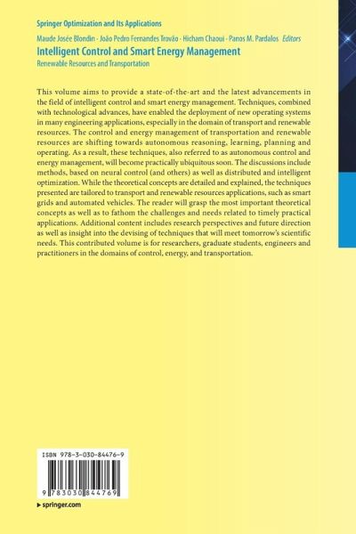 This volume aims to provide a state-of-the-art and the latest advancements in the field of intelligent control and smart energy management. Techniques, combined with technological advances, have enabled the deployment of new operating systems in many engineering applications, especially in the domain of transport and renewable resources. The control and energy management of transportation and renewable resources are shifting towards autonomous reasoning, learning, planning and operating. As a result, these techniques, also referred to as autonomous control and energy management, will become practically ubiquitous soon. The discussions include methods, based on neural control (and others) as well as distributed and intelligent optimization. While the theoretical concepts are detailed and explained, the techniques presented are tailored to transport and renewable resources applications, such as smart grids and automated vehicles. The reader will grasp the most important theoretical concepts as well as to fathom the challenges and needs related to timely practical applications. Additional content includes research perspectives and future direction as well as insight into the devising of techniques that will meet tomorrow's scientific needs. This contributed volume is for researchers, graduate students, engineers and practitioners in the domains of control, energy, and transportation.
