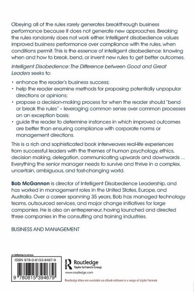 Dedication Acknowledgements List of Figures and Tables Introduction Chapter 1 - What is Intelligent Disobedience? Chapter 2 - Vanquishing Remorse Chapter 3 - A Higher Form of Ethics Chapter 4 - Simple and Commonplace Intelligent Disobedience Chapter 5 - Redefining Courage Chapter 6 - History is Rarely Made by the Well Behaved Chapter 7-Share the Truth Chapter 8 - Authorizing Control by Relinquishing Control Chapter 9 - Storytelling Chapter 10 - Lessons Learned Chapter 11 - Learning from Successful Intelligent Disobedience Chapter 12 A Call to Action - The Next Step is Yours Index