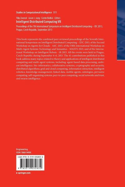 of the Seventh International Symposium on Intelligent Distributed Computing - IDC-2013, of the Second Workshop on Agents for Clouds - A4C-2013, of the Fifth International Workshop on Multi-Agent Systems Technology and Semantics - MASTS-2013,