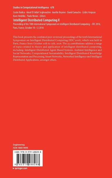 Proceedings of the 10th International Symposium on Intelligent Distributed Computing - IDC 2016, Paris, France, October 10-12 2016 Herausgegeben:Badica, Costin; El Fallah Seghrouchni, Amal; Beynier, Aurélie; Camacho, David; Herpson, Cédric; Hindriks, Koen; Novais, Paulo