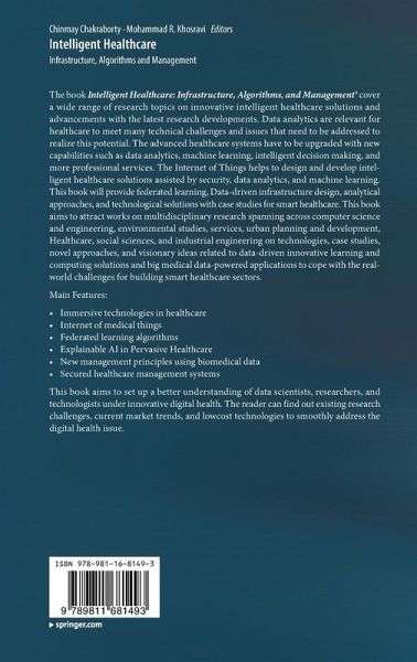 The book Intelligent Healthcare: Infrastructure, Algorithms, and Management® cover a wide range of research topics on innovative intelligent healthcare solutions and advancements with the latest research developments. Data analytics are relevant for healthcare to meet many technical challenges and issues that need to be addressed to realize this potential. The advanced healthcare systems have to be upgraded with new capabilities such as data analytics, machine learning, intelligent decision making, and more professional services. The Internet of Things helps to design and develop intelligent healthcare solutions assisted by security, data analytics, and machine learning.
