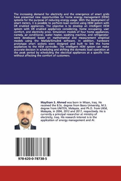 The increasing demand for electricity and the emergence of smart grids have presented new opportunities for home energy management (HEM) systems for the purpose of reducing energy usage. With the deployment of smart meters, it is possible to perform load control using HEM system with DR enabled appliances. The objective is to develop an intelligent HEM system with DR enabled appliances considering, home occupancy, user comfort, and electricity price. Simulation models of four home appliances, namely, air conditioner, water heater, washing machine, and refrigerator were developed based on mathematical and measurement empirical models using the Matlab/Simulink software. In addition, hardware prototype smart sockets were designed and built to link the home appliances to the HEM controller. The intelligent HEM system can make accurate decision in scheduling and shifting the domestic load operation at the peak period by scheduling the electrical appliances at a specific time without affecting the comfort of customers.