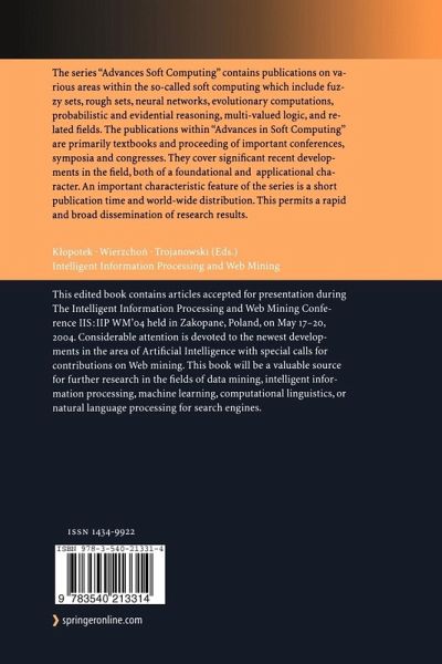 This volume contains articles accepted for presentation during The Intel ligent Information Processing and Web Mining Conference IIS:IIPWM'04 which was held in Zakopane, Poland, on May 17-20, 2004. This conference is a continuation of a series of 13 successful symposia and conferrences on Intel ligent Information Systems, organized by the Institute of Computer Science of Polish Academy of Sciences, devoted to new trends in (broadly understood) Artificial Intelligence. The idea of organizing such meetings dates back to 1992. Our main in tention guided the first, rather small-audience, workshop in the series was to resume the results gained in Polish scientific centers as well as contrast them with the research performed by Polish scientists working at the universities in Europe and USA and their foreign collaborators. This idea proved to be attractive enough that we decided to continue such meetings. As the years went by, the workshops has transformed into regular symposia devotedto such fields like Machine Learning, Knowledge Discovery, Natural Language Processing, Knowledge Based Systems and Reasoning, and Soft Computing (i. e. Fuzzy and Rough Sets, Bayesian Networks, Neural Networks and Evo lutionary Algorithms). At present, about 50 papers prepared by researches from Poland and other countries are usually presented. This year conference devotes much more attention to the newest devel opments in the area of Artificial Intelligence, related to broadly understood Web mining.