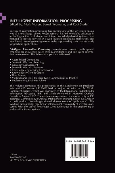 Mark Musen / Bernd Neumann / Rudi Studer (Hgg.)IFIP 17th World Computer Congress - TC12 Stream on Intelligent Information Processing August 25-30, 2002, Montréal, Québec, Canada