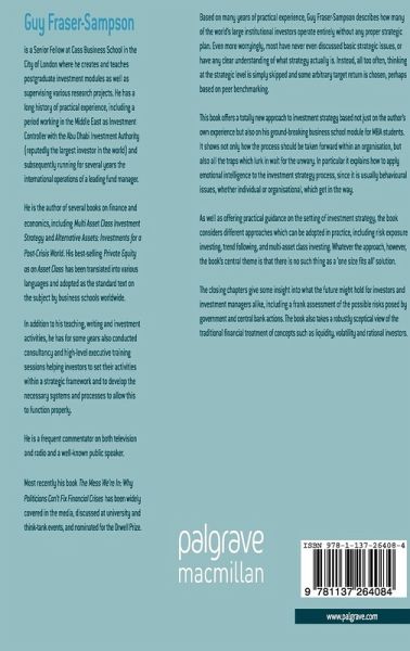 1. What is Strategy? 2. Strategy and Investment 3. Conducting the Process 4. What sort of investor are we? Different perspectives on liquidity and volatility 5. SWOT analysis for investors 6. What are we Trying to Achieve? 7. Asset Allocation: Theory and Practice 8. Asset Allocation in Practice 9. How to Access Asset Types: Selecting Passive and Active Managers 10. New Developments: Trend and Risk Factor Investing 11. Ten 'Do' and 'Don't' Guidelines 12. Concluding Thoughts: Where are we Going?