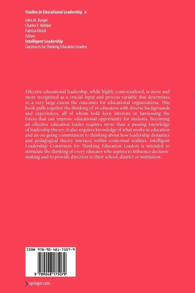 Effective educational leadership, while highly contextualized, is more and more recognized as a crucial input and process variable that determines to a very large extent the outcomes for educational organizations. This book pulls together the thinking of 16 educators with diverse backgrounds and experiences, all of whom hold keen interests in harnessing the forces that can improve educational opportunity for students. Becoming an effective education leader requires more than a passing knowledge of leadership theory; it also requires knowledge of what works in education and an on-going commitment to thinking about how leadership dynamics and pedagogical theory intersect within contextual realities. Intelligent Leadership: Constructs for Thinking Education Leaders is intended to stimulate the thinking of every educator who aspires to influence decision-making and to provide direction to their school, district or institution.