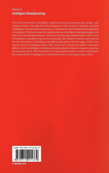 This book introduces intelligent manufacturing system planning, design, and implementation, through the deep integration of the Internet, big data, artificial intelligence, and manufacturing process, to promote the transformation and upgrading of enterprises. This book shows the implementation of intelligent manufacturing process with 12 benchmarking enterprises, discusses the planning, implementation, and control of intelligent manufacturing system technology and method of theory, and analyzes the five hierarchies of intelligent manufacturing system, the five stages of life cycle, and five kinds of intelligent depth. The content can cultivate the reader's vocational ability to develop intelligent solutions and implementation based on complex, uncertain environment needs. This book will be interesting and useful to a wide readership in the various fields of management, information science, and engineering science.