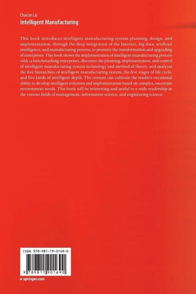 This book introduces intelligent manufacturing system planning, design, and implementation, through the deep integration of the Internet, big data, artificial intelligence, and manufacturing process, to promote the transformation and upgrading of enterprises. This book shows the implementation of intelligent manufacturing process with 12 benchmarking enterprises, discusses the planning, implementation, and control of intelligent manufacturing system technology and method of theory, and analyzes the five hierarchies of intelligent manufacturing system, the five stages of life cycle, and five kinds of intelligent depth. The content can cultivate the reader's vocational ability to develop intelligent solutions and implementation based on complex, uncertain environment needs. This book will be interesting and useful to a wide readership in the various fields of management, information science, and engineering science.