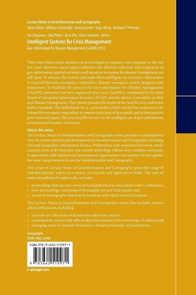 There have been major advances in technologies to support crisis response in the last few years. However, many aspects related to the efficient collection and integration of geo-information, applied semantics and situation awareness for disaster management are still open. To advance the systems and make them intelligent, an extensive collaboration is required between emergency responders, disaster managers, system designers and researchers. To facilitate this process the Geo-information for Disaster Management (Gi4DM) conference has been organized since 2005. Gi4DM is coordinated by the Joint Board of Geospatial Information Societies (JB GIS) and the ad-hoc Committee on Risk and Disaster Management. This volume presents the results of the Gi4DM 2012 conference, held in Enschede, the Netherlands, on 13-15 December . It contains a selection of around 30 scientific and 25 best-practice peer-reviewed papers. The 2012 Gi4DM focuses on the intelligent use of geo-information, semanticsand situation awareness.