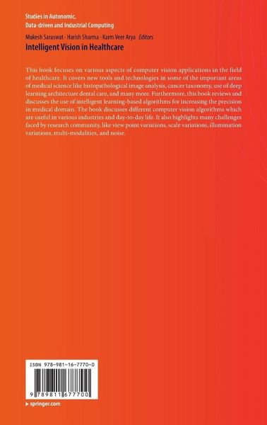 This book focuses on various aspects of computer vision applications in the field of healthcare. It covers new tools and technologies in some of the important areas of medical science like histopathological image analysis, cancer taxonomy, use of deep learning architecture dental care, and many more. Furthermore, this book reviews and discusses the use of intelligent learning-based algorithms for increasing the precision in medical domain. The book discusses different computer vision algorithms which are useful in various industries and day-to-day life. It also highlights many challenges faced by research community, like view point variations, scale variations, illumination variations, multi-modalities, and noise.