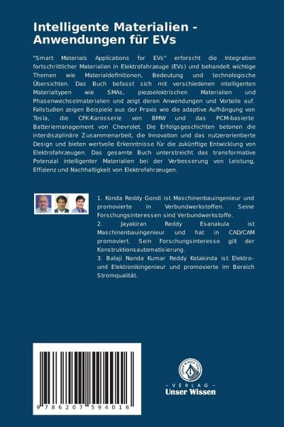 "Smart Materials Applications for EVs" erforscht die Integration fortschrittlicher Materialien in Elektrofahrzeuge (EVs) und behandelt wichtige Themen wie Materialdefinitionen, Bedeutung und technologische Übersichten. Das Buch befasst sich mit verschiedenen intelligenten Materialtypen wie SMAs, piezoelektrischen Materialien und Phasenwechselmaterialien und zeigt deren Anwendungen und Vorteile auf. Fallstudien zeigen Beispiele aus der Praxis wie die adaptive Aufhängung von Tesla, die CFK-Karosserie von BMW und das PCM-basierte Batteriemanagement von Chevrolet. Die Erfolgsgeschichten betonen die interdisziplinäre Zusammenarbeit, die Innovation und das nutzerorientierte Design und bieten wertvolle Erkenntnisse für die zukünftige Entwicklung von Elektrofahrzeugen. Das gesamte Buch unterstreicht das transformative Potenzial intelligenter Materialien bei der Verbesserung von Leistung, Effizienz und Nachhaltigkeit von Elektrofahrzeugen.