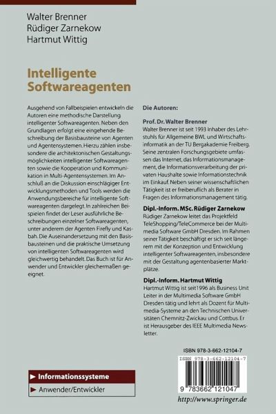 Ausgehend von Fallbeispielen entwickeln die Autoren eine methodische Darstellung Intelligenter Softwareagenten. Neben den Grundlagen werden die Einflüsse der Künstlichen Intelligenz, der Netzwerke und Kommunikationssysteme eingehend beschrieben. Im Anschluß an die einschlägigen Entwicklungsmethoden und Tools werden die Anwendungsbereiche für Intelligente Softwareagenten dargelegt. In zahlreichen Beispielen findet der Leser ausführliche Beschreibungen einzelner Softwareagenten, insbesondere der Agenten Firefly und Kasbah. Die Auseinandersetzung mit den Basisbausteinen und die praktische Umsetzung von Intelligenten Softwareagenten wird gleichgewichtig behandelt. Damit ist das Buch sowohl für Anwender als auch für Entwickler geeignet.