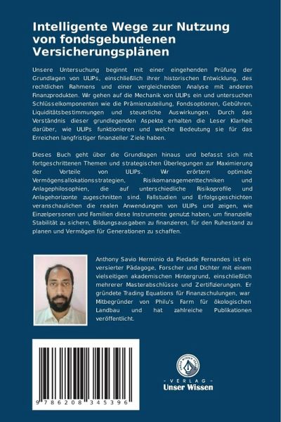 Unsere Untersuchung beginnt mit einer eingehenden Prüfung der Grundlagen von ULIPs, einschließlich ihrer historischen Entwicklung, des rechtlichen Rahmens und einer vergleichenden Analyse mit anderen Finanzprodukten. Wir gehen auf die Mechanik von ULIPs ein und untersuchen Schlüsselkomponenten wie die Prämienzuteilung, Fondsoptionen, Gebühren, Liquiditätsbestimmungen und steuerliche Auswirkungen. Durch das Verständnis dieser grundlegenden Aspekte erhalten die Leser Klarheit darüber, wie ULIPs funktionieren und welche Bedeutung sie für das Erreichen langfristiger finanzieller Ziele haben.Dieses Buch geht über die Grundlagen hinaus und befasst sich mit fortgeschrittenen Themen und strategischen Überlegungen zur Maximierung der Vorteile von ULIPs. Wir erörtern optimale Vermögensallokationsstrategien, Risikomanagementtechniken und Anlagephilosophien, die auf unterschiedliche Risikoprofile und Anlagehorizonte zugeschnitten sind. Fallstudien und Erfolgsgeschichten veranschaulichen die realen Anwendungen von ULIPs und zeigen, wie Einzelpersonen und Familien diese Instrumente genutzt haben, um finanzielle Stabilität zu sichern, Bildungsausgaben zu finanzieren, für den Ruhestand zu planen und Vermögen für Generationen zu schaffen.