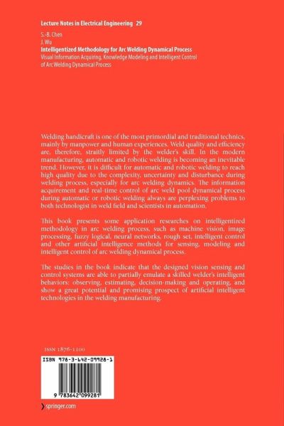 Welding handicraft is one of the most primordial and traditional technics, mainly by manpower and human experiences. Weld quality and ef?ciency are, therefore, straitly limited by the welder's skill. In the modern manufacturing, automatic and robotic welding is becoming an inevitable trend. However, it is dif?cult for au- matic and robotic welding to reach high quality due to the complexity, uncertainty and disturbance during welding process, especially for arc welding dynamics. The information acquirement and real-time control of arc weld pool dynamical process during automatic or robotic welding always are perplexing problems to both te- nologist in weld ?eld and scientists in automation. This book presents some application researches on intelligentized methodology in arc welding process, such as machine vision, image processing, fuzzy logical, neural networks, rough set, intelligent control and other arti?cial intelligence me- ods for sensing, modeling and intelligent control of arc welding dynamical process. The studies in the book indicate that the designed vision sensing and control s- tems are able to partially emulate a skilled welder's intelligent behaviors: observing, estimating, decision-making and operating, and show a great potential and prom- ing prospect of arti?cial intelligent technologies in the welding manufacturing.