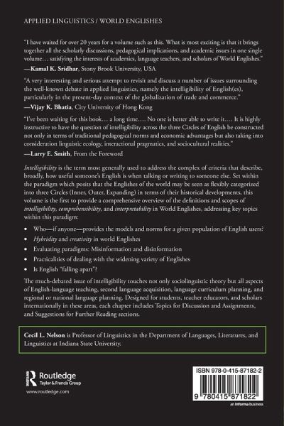 Intelligibility is the term most generally used to address the complex of criteria that describe, broadly, how useful someone's English is when talking or writing to someone else. Set within the paradigm of world Englishes - which posits that the Englishes of the world may be seen as flexibly categorized into three Circles (Inner, Outer, Expanding) in terms of their historical developments - this text provides a comprehensive overview of the definitions and scopes of intelligibility, comprehensibility and interpretability, and addresses key topics within this paradigm: Who - if anyone - provides the models and norms for a given population of English users? Hybridity and creativity in world Englishes Evaluating paradigms: misinformation and disinformation Practicalities of dealing with the widening variety of Englishes Is English "falling apart"? The much-debated issue of intelligibility touches not only sociolinguistic theory but all aspects of English language teaching, second language acquisition, language curriculum planning, and regional or national language planning. Designed for students, teacher educators, and scholars internationally, each chapter includes 'Topics for Discussion and Assignments' and 'Suggestions for Further Reading'.