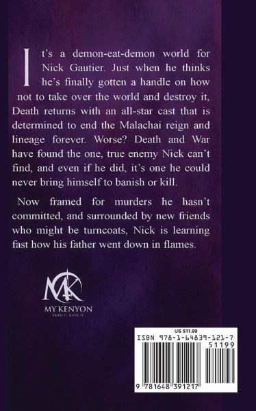 "It's a demon-eat-demon world for Nick Gautier. Just when he thinks he's finally gotten a handle on how not to take over the world and destroy it, Death returns with an all-star cast that is determined to end the Malachai reign and lineage forever. Worse? Death and War have found the one, true enemy Nick can't find, and even if he did,it's one he could never bring himself to banish or kill. Now framed for murders he hasn't committed, and surrounded by new friends who might be turncoats, Nick is learning fast how his father went down in flames"
