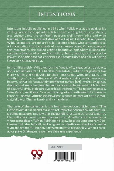 Intentions Initially published in 1891 when Wilde was at the peak of his writing career, these splendid articles on art, writing, literature, criticism, and society show the confident poseur's well-known mind and wide learning. The main representative of the English Esthetic development, Wilde promoted "art for art's sake" against critics who contended that art should dive into the morals of every human being. On each page of this assortment, the skilled artistic beautician splendidly exhibits not only the attributes of art are "distinction, charm, beauty, and imaginative power," in addition to that, criticism itself can be raised to a fine art having these very characteristics. In the initial article, Wilde regrets the " decay of Lying as an art, a science, and a social pleasure." He berates present-day artistic pragmatists like Henry James and Emile Zola for their " monstrous worship of facts" and smothering of the creative mind. What makes craftsmanship awesome, he says, is that it is "absolutely indifferent to fact, [art] invents, imagines, dreams, and keeps between herself and reality the impenetrable barrier of beautiful style, of decorative or ideal treatment."The following article, "Pen, Pencil, and Poison," is an entrancing artistic enthusiasm for the existence of Thomas Griffiths Wainewright, a gifted painter, art critic, classicist, fellow of Charles Lamb, and - a murderer. The core of the collection is the long two-section article named "The Critic as Artist." In an endless series of important entries, Wilde takes incredible measures to show that the pundit is just as much a craftsman as the craftsman himself, sometimes more so. A skilled critic resembles a virtuoso mediator: "When Rubinstein plays ... he gives us not merely Beethoven, but also himself, and so gives us Beethoven absolutely...made vivid and wonderful to us by a new and intense personality. When a great actor plays Shakespeare we have the same experience" At long last, in "The Truth of Masks," Wilde gets back to the topic of art as artifice and creative deception. This article centers around the utilization of veils, camouflages, and outfits in Shakespeare. For novices to Wilde and the people who know his popular plays and fiction, this brilliant assortment of his analysis offers many pleasures.