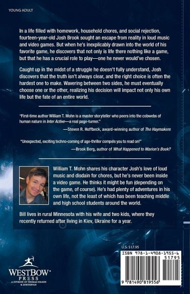 In a life filled with homework, household chores, and social rejection, fourteen-year-old Josh Brook sought an escape from reality in loud music and video games. But when he's inexplicably drawn into the world of his favorite game, he discovers that not only is life there nothing like a game, but that he has a crucial role to play-one he never would've chosen. Caught up in the midst of a struggle he doesn't fully understand, Josh discovers that the truth isn't always clear, and the right choice is often the hardest one to make. Wavering between two sides, he must eventually choose one or the other, realizing his decision will impact not only his own life but the fate of an entire world. "First-time author William T. Mohn is a master storyteller who peers into the cobwebs of human nature in Inter Active-a real page-turner." -Steven R. Hoffbeck, award-winning author of The Haymakers "Unexpected, exciting techno-coming of age-thriller compels you to read on!" -Brook Berg, author of What Happened to Marion's Book?