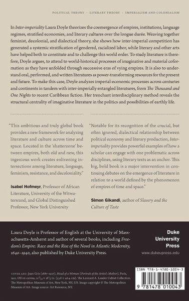 In Inter-imperiality Laura Doyle theorizes the co-emergence of empires, institutions, language regimes, stratified economies, and literary cultures over the longue durée. Weaving together feminist, decolonial, and dialectical theory, she shows how inter-imperial competition has generated a systemic stratification of gendered, racialized labor, while literary and other arts have helped both to constitute and to challenge this world order. To study literature is therefore, Doyle argues, to attend to world-historical processes of imaginative and material co-formation as they have unfolded through successive eras of vying empires. It is also to understand oral, performed, and written literatures as power-transforming resources for the present and future. To make this case, Doyle analyzes imperial-economic processes across centuries and continents in tandem with inter-imperially entangled literatures, from A Thousand and One Nights to recent Caribbean fiction. Her trenchant interdisciplinary method reveals the structural centrality of imaginative literature in the politics and possibilities of earthly life.