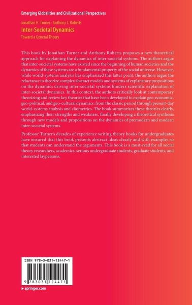 This book by Jonathan Turner and Anthony Roberts proposes a new theoretical approach for explaining the dynamics of inter-societal systems. The authors argue that inter-societal systems have existed since the beginning of human societies and the dynamics of these systems are a fundamental property of the social universe. However, while world-systems analysis has emphasized this latter point, the authors argue the reluctance to theorize complex abstract models and systems of explanatory propositions on the dynamics driving inter-societal systems hinders scientific explanation of inter-societal dynamics. In this context, the authors critically look at contemporary theorizing and review key theories that have been developed to explain geo-economic, geo-political, and geo-cultural dynamics, from the classic period through present-day world-systems analysis and cliometrics. The book summarizes these theories clearly, emphasizing their strengths and weakness, finally developing a theoreticalsynthesis through new models and propositions on the dynamics of premodern and modern inter-societal systems.