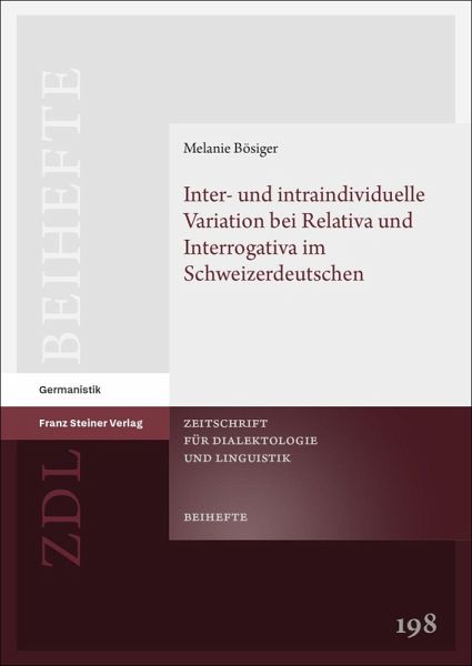 Melanie Bösiger untersucht in ihrer Dissertation empirisch die Verwendung von Relativa und Interrogativa im Schweizerdeutschen. Grundlage der Analyse bilden einerseits Grammatiken und Wörterbücher zum Schweizerdeutschen und andererseits Antworten aus Fragebogen von über 1 000 Personen aus allen Regionen der Deutschschweiz, die den heutigen Sprachgebrauch dokumentieren.