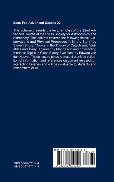Observational and Theoretical Issues of Interacting Binaries was the topic of the 22nd Advanced Course of the Swiss Society for Astrophysics and Astronomy. It was the first time that binary systems were the center of attention of our course. The established concept and organisation of the Advanced Course has been retained: three scientists, all acknowledged experts in their respective fields, were each invited to give nine one-hour lectures within the period of a week. The Advanced Course took place from April 6 to 11, 1992, at Les Diablerets, a charming resort in the Swiss alps. The high level of the lectures, the international background of the 65 participants, including many young students, and the beauty of the surroundings all contributed to the success of the course. The lecture notes of this course, the 22nd in our series, are also the third to be published by Springer-Verlag. Well over half of all stars seem to exist in binary systems. The study of binary evolution is therefore essential for our understanding of stellar evolution in general. The evolution of interacting binaries contains in itself many of the problems met in other fields of modern astrophysics. This is very apparent in these lecture notes.