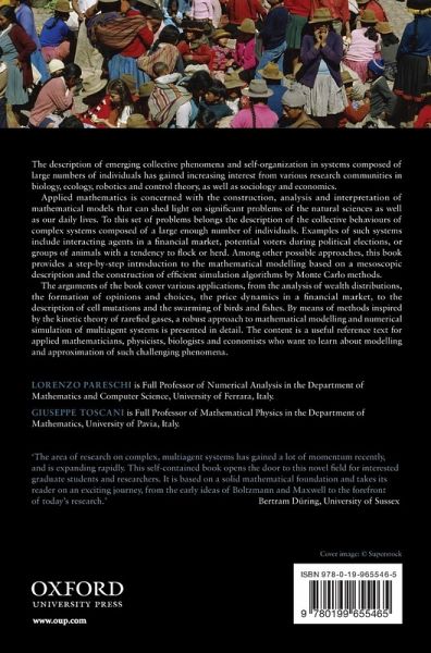 PART I: KINETIC MODELLING AND SIMULATION 1: A short introduction to kinetic equations 2: Mathematical tools 3: Monte Carlo strategies 4: Monte Carlo methods for kinetic equations PART II: MULTIAGENT KINETIC EQUATIONS 5: Models for wealth distribution 6: Opinion modelling and consensus formation 7: A further insight into economy and social sciences 8: Modelling in life sciences Appendix A: Basic arguments on Fourier transforms Appendix B: Important probability distributions
