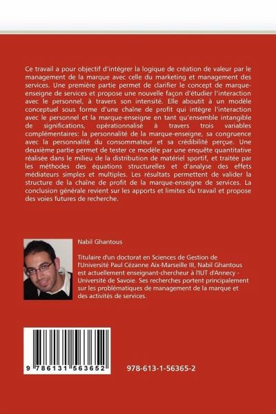 Ce travail a pour objectif d'intégrer la logique de création de valeur par le management de la marque avec celle du marketing et management des services. Une première partie permet de clarifier le concept de marque-enseigne de services et propose une nouvelle façon d'étudier l'interaction avec le personnel, à travers son intensité. Elle aboutit à un modèle conceptuel sous forme d'une chaîne de profit qui intègre l'interaction avec le personnel et la marque-enseigne en tant qu'ensemble intangible de significations, opérationnalisé à travers trois variables complémentaires: la personnalité de la marque-enseigne, sa congruence avec la personnalité du consommateur et sa crédibilité perçue. Une deuxième partie permet de tester ce modèle par une enquête quantitative réalisée dans le milieu de la distribution de matériel sportif, et traitée par les méthodes des équations structurelles et d'analyse des effets médiateurs simples et multiples. Les résultats permettent de valider la structure de la chaîne de profit de la marque-enseigne de services. La conclusion générale revient sur les apports et limites du travail et propose des voies futures de recherche.