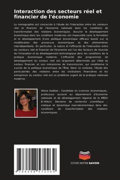 La monographie est consacrée à l'étude de l'interaction entre les secteurs réel et financier de l'économie nationale dans les conditions de transformation des relations économiques. Assurer le développement économique dans les conditions modernes est impossible sans la formation et le développement d'une politique économique efficace basée sur la modélisation des processus économiques et des phénomènes interdépendants. En particulier, la nature et l'efficacité de l'interaction entre les secteurs réel et financier de l'économie est l'un des facteurs de réussite de l'innovation et du développement technologique dans les conditions de la pratique économique moderne. L'efficacité des programmes de développement du secteur réel est largement déterminée par l'état du secteur financier et son mécanisme de transmission, qui conditionne le succès de la politique économique de l'État. Dans ce contexte, l'étude des particularités des relations entre les institutions financières et les entreprises du secteur réel est un problème urgent de la pratique nationale moderne.