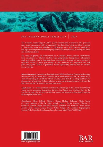 The Graduate Archaeology at Oxford (GAO) International Conference 2021 provided early career researchers with the opportunity to share their work and ideas in regard to interaction, trade and mobility in archaeology. Over the three-day conference, this topic was analysed from different perspectives: social interactions, economy and trade, and maritime network. The array of papers, all characterised by a coherent theme, contain contributions from researchers in different academic and geographical backgrounds. Interactions, trade and mobility can be interpreted and conceived in a variety of ways, and this is especially evident in these proceedings, as the conference was organised and took place during the COVID-19 pandemic, which significantly affected how we interact in everyday life.