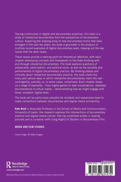 These issues provide a starting point for theoretical reflection, with each chapter developing concepts and frameworks to facilitate thinking with and through interactive documentary. The book explores questions of polyvocality, participation, and political voice, as well as the sociality and performativity of digital documentary practice. By thinking deeply and critically about interactive documentary practice, the book charts the many and various ways in which interactive documentaries claim the real - contingently, partially, or, in some cases, collectively. Each chapter draws on a range of examples - from digital games to data visualisations, database documentaries to virtual reality - demonstrating how we might engage with these 'unstable' digital texts.