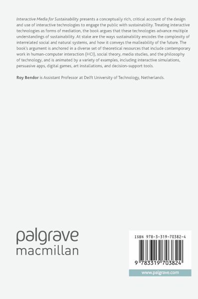 Interactive Media for Sustainability presents a conceptually rich, critical account of the design and use of interactive technologies to engage the public with sustainability. Treating interactive technologies as forms of mediation, the book argues that these technologies advance multiple understandings of sustainability. At stake are the ways sustainability encodes the complexity of interrelated social and natural systems, and how it conveys the malleability of the future. The book's argument is anchored in a diverse set of theoretical resources that include contemporary work in human-computer interaction (HCI), social theory, media studies, and the philosophy of technology, and is animated by a variety of examples, including interactive simulations, persuasive apps, digital games, art installations, and decision-support tools.