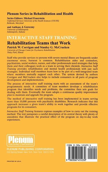 Health workers who provide services to persons with severe mental illness are frequently under enormous stress; burnout is common. Alleviating such stress is the objective of Interactive Staff Training . The book provides rehabilitation and mental health professionals with a strategy to help them and their colleagues work as a well-integrated team. This strategy has been implemented in teams serving more than 10,000 persons with psychiatric disabilities. The text combines a careful description of the central theory behind the strategy with pleanty of clinical anecdotes that illustrate its practical, everyday benefits.…mehr