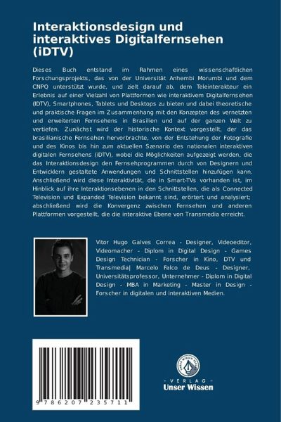 Dieses Buch entstand im Rahmen eines wissenschaftlichen Forschungsprojekts, das von der Universität Anhembi Morumbi und dem CNPQ unterstützt wurde, und zielt darauf ab, dem Teleinterakteur ein Erlebnis auf einer Vielzahl von Plattformen wie interaktivem Digitalfernsehen (IDTV), Smartphones, Tablets und Desktops zu bieten und dabei theoretische und praktische Fragen im Zusammenhang mit den Konzepten des vernetzten und erweiterten Fernsehens in Brasilien und auf der ganzen Welt zu vertiefen. Zunächst wird der historische Kontext vorgestellt, der das brasilianische Fernsehen hervorbrachte, von der Entstehung der Fotografie und des Kinos bis hin zum aktuellen Szenario des nationalen interaktiven digitalen Fernsehens (iDTV), wobei die Möglichkeiten aufgezeigt werden, die das Interaktionsdesign den Fernsehprogrammen durch von Designern und Entwicklern gestaltete Anwendungen und Schnittstellen hinzufügen kann. Anschließend wird diese Interaktivität, die in Smart-TVs vorhanden ist, im Hinblick auf ihre Interaktionsebenen in den Schnittstellen, die als Connected Television und Expanded Television bekannt sind, erörtert und analysiert; abschließend wird die Konvergenz zwischen Fernsehen und anderen Plattformen vorgestellt, die die interaktive Ebene von Transmedia erreicht.