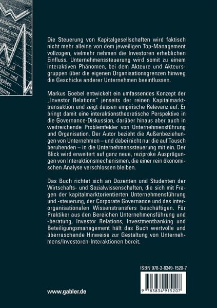 Markus Goebel entwickelt ein umfassendes Konzept der "Investor Relations" jenseits der reinen Kapitalmarkttransaktion und zeigt dessen empirische Relevanz auf. Er bringt damit eine interaktionstheoretische Perspektive in die Governance-Diskussion, darüber hinaus aber auch in weitreichende Problemfelder von Unternehmensführung und Organisation. Der Autor bezieht die Außenbeziehungen von Unternehmen - und dabei nicht nur die auf Tausch beruhenden - in die Unternehmenssteuerung mit ein. Der Blick wird erweitert auf ganz neue, reziproke Ausprägungen von Interaktionsmechanismen, die einer rein ökonomischen Analyse verschlossen bleiben.