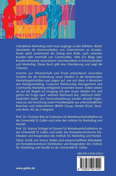 Interaktives Marketing nutzt neue Zugänge zu den Märkten. Bisher dominierte die Kommunikation von Unternehmen an Kunden, heute spielt zunehmend der Dialog eine Rolle, auch zwischen Kunden oder innerhalb von Communities. Web 2.0, Blogs oder Kundennetzwerke verunsichern Verantwortliche in Kommunikation und Marketing. Dieses Buch gibt eine Orientierung und zeigt die Chancen.