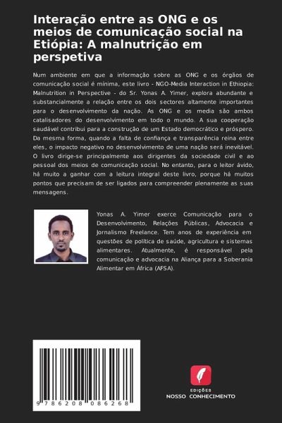 Num ambiente em que a informação sobre as ONG e os órgãos de comunicação social é mínima, este livro - NGO-Media Interaction in Ethiopia: Malnutrition in Perspective - do Sr. Yonas A. Yimer, explora abundante e substancialmente a relação entre os dois sectores altamente importantes para o desenvolvimento da nação. As ONG e os media são ambos catalisadores do desenvolvimento em todo o mundo. A sua cooperação saudável contribui para a construção de um Estado democrático e próspero. Da mesma forma, quando a falta de confiança e transparência reina entre eles, o impacto negativo no desenvolvimento de uma nação será inevitável. O livro dirige-se principalmente aos dirigentes da sociedade civil e ao pessoal dos meios de comunicação social. No entanto, para o leitor ávido, há muito a ganhar com a leitura integral deste livro, porque há muitos pontos que precisam de ser ligados para compreender plenamente as suas mensagens.