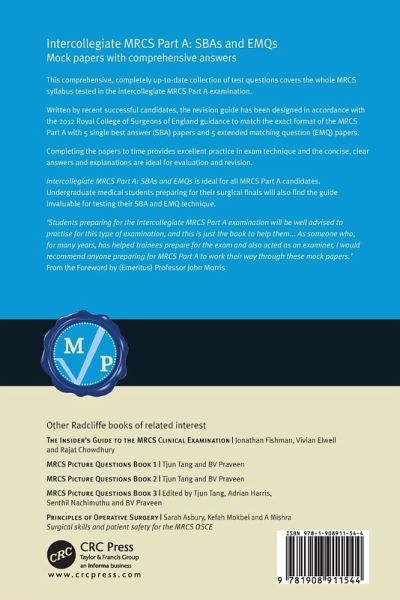 This comprehensive, completely up-to-date collection of test questions covers the whole MRCS syllabus tested in the intercollegiate MRCS Part A examination