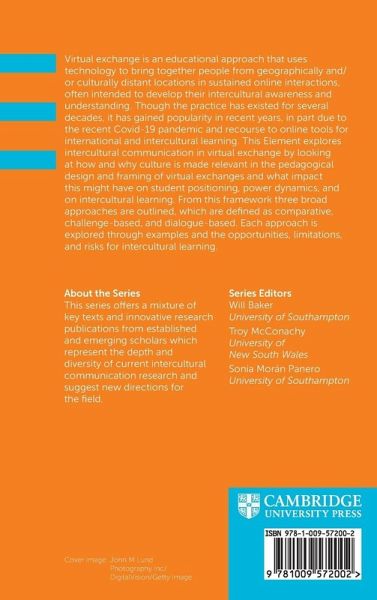 Virtual exchange is an educational approach that uses technology to bring together people from geographically and/or culturally distant locations in sustained online interactions, often intended to develop their intercultural awareness and understanding. Though the practice has existed for several decades, it has gained popularity in recent years, in part due to the recent Covid-19 pandemic and recourse to online tools for international and intercultural learning. This Element explores intercultural communication in virtual exchange by looking at how and why culture is made relevant in the pedagogical design and framing of virtual exchanges and what impact this might have on student positioning, power dynamics, and on intercultural learning. From this framework three broad approaches are outlined, which are defined as comparative, challenge-based, and dialogue-based. Each approach is explored through examples and the opportunities, limitations, and risks for intercultural learning.