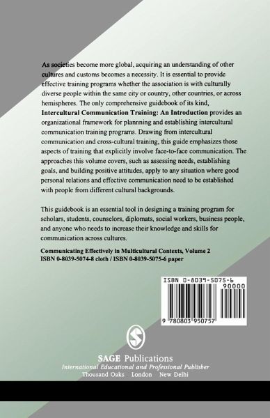 This unique handbook provides an organizational framework for planning and establishing intercultural communication training programmes. Drawing from intercultural communication and cross-cultural training, this guide emphasizes those aspects of training that explicitly involve face-to-face communication. The approaches covered apply to any situation where good personal relations and effective communication need to be established with people from different cultural backgrounds.