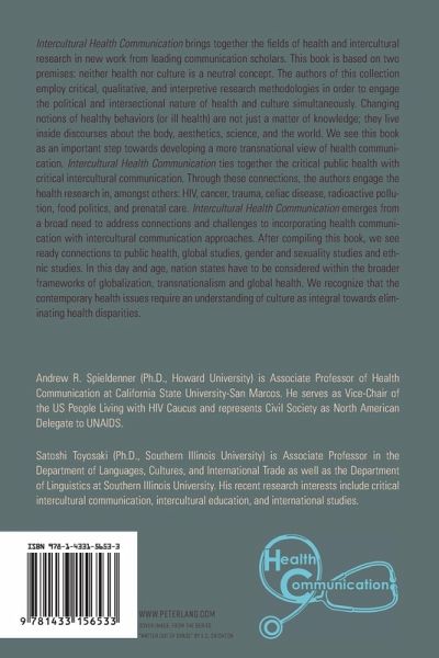 "Intercultural Health Communication adopts a critical perspective and connects health communication scholarship with intercultural communication. Rooted in lived experiences and cultural identities, the essays in this collection examine and interrogate the different aspects of health in the context of culture. Moreover, this collection employs global perspectives and is committed to social justice issues in the context of health communication. While this book fills a void in the literature and offers a much-needed outlook by connecting intercultural and health communication discourses, it also encourages a more expansive dialogue between these two areas in the field of communication. The essays in this collection employ critical, qualitative, and interpretive approaches to illuminate different areas and issues of intercultural health communication. Hence, they are bold, personal, provocative, critical, and thoughtful." -Ahmet Atay, Associate Professor, Department of Communication, College of Wooster