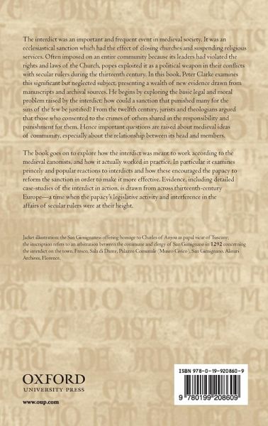 The Catholic Church extended its authority over many areas of life in the Later Middle Ages, and this increasingly led it into political conflicts with kings and other rulers. In this book, Peter Clarke focuses on one of the Church's chief weapons in these struggles - the interdict. A sanction that could be imposed on an entire kingdom, an interdict was similar to a strike in which clergy closed churches and refused to perform most religious ministrations. It was therefore a major event in medieval society, and this book is the first in-depth treatment of this phenomenon, exploring the issues of collective guilt and responsibility that are still important today.