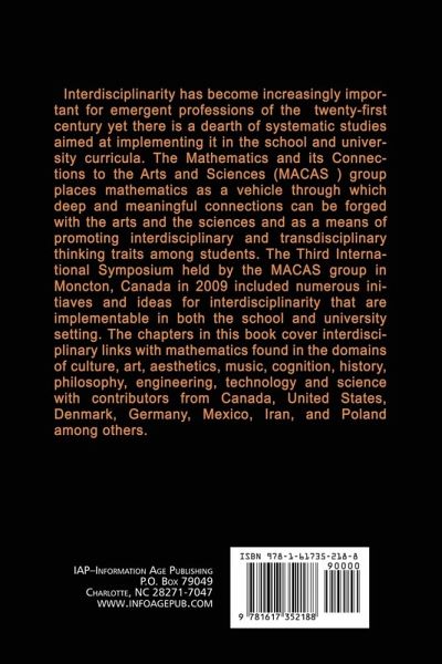 Interdisciplinarity has become increasingly important for emergent professions of the 21st century yet there is a dearth of systematic studies aimed at implementing it in the school and university curricula. The Mathematics and its Connections to the Arts and Sciences (MACAS ) group places Mathematics as a vehicle through which deep and meaningful connections can be forged with the Arts and the Sciences and as a means of promoting interdisciplinary and transdisciplinary thinking traits amongst students. The Third International Symposium held by the MACAS group in Moncton, Canada in 2009 included numerous initiatives and ideas for interdisciplinarity that are implementable in both the school and university setting. The chapters in this book cover interdisciplinary links with mathematics found in the domains of culture, art, aesthetics, music, cognition, history, philosophy, engineering, technology and science with contributors from Canada, U.S, Denmark, Germany, Mexico, Iran and Poland amongst others.