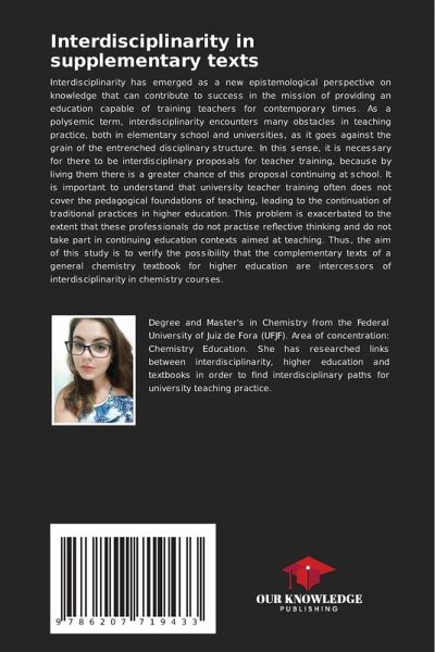 Interdisciplinarity has emerged as a new epistemological perspective on knowledge that can contribute to success in the mission of providing an education capable of training teachers for contemporary times. As a polysemic term, interdisciplinarity encounters many obstacles in teaching practice, both in elementary school and universities, as it goes against the grain of the entrenched disciplinary structure. In this sense, it is necessary for there to be interdisciplinary proposals for teacher training, because by living them there is a greater chance of this proposal continuing at school. It is important to understand that university teacher training often does not cover the pedagogical foundations of teaching, leading to the continuation of traditional practices in higher education. This problem is exacerbated to the extent that these professionals do not practise reflective thinking and do not take part in continuing education contexts aimed at teaching. Thus, the aim of this study is to verify the possibility that the complementary texts of a general chemistry textbook for higher education are intercessors of interdisciplinarity in chemistry courses.