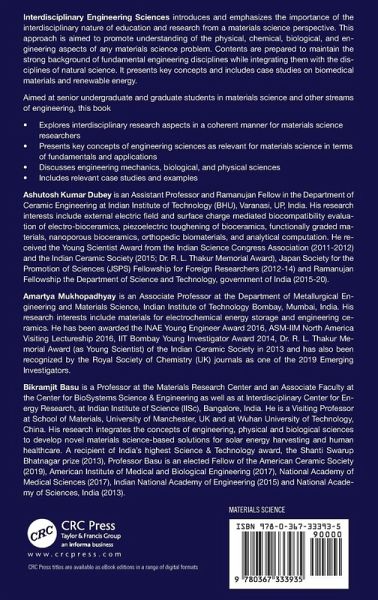 Interdisciplinary Engineering Sciences introduces and emphasizes the importance of the interdisciplinary nature of education and research from a materials science perspective. This approach is aimed to promote understanding of the physical, chemical, biological and engineering aspects of any materials science problem. Contents are prepared to maintain the strong background of fundamental engineering disciplines while integrating them with the disciplines of natural science. It presents key concepts and includes case studies on biomedical materials and renewable energy. Aimed at senior undergraduate and graduate students in materials science and other streams of engineering, this book Explores interdisciplinary research aspects in a coherent manner for materials science researchers Presents key concepts of engineering sciences as relevant for materials science in terms of fundamentals and applications Discusses engineering mechanics, biological and physical sciences Includes relevant case studies and examples